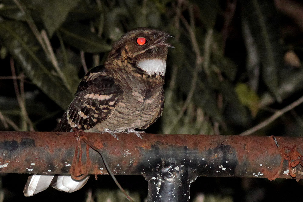 My 4th attempt to get the right shots. Problems to get accurate focus at night, to get the exposure/flash right, and to hide from the bird.