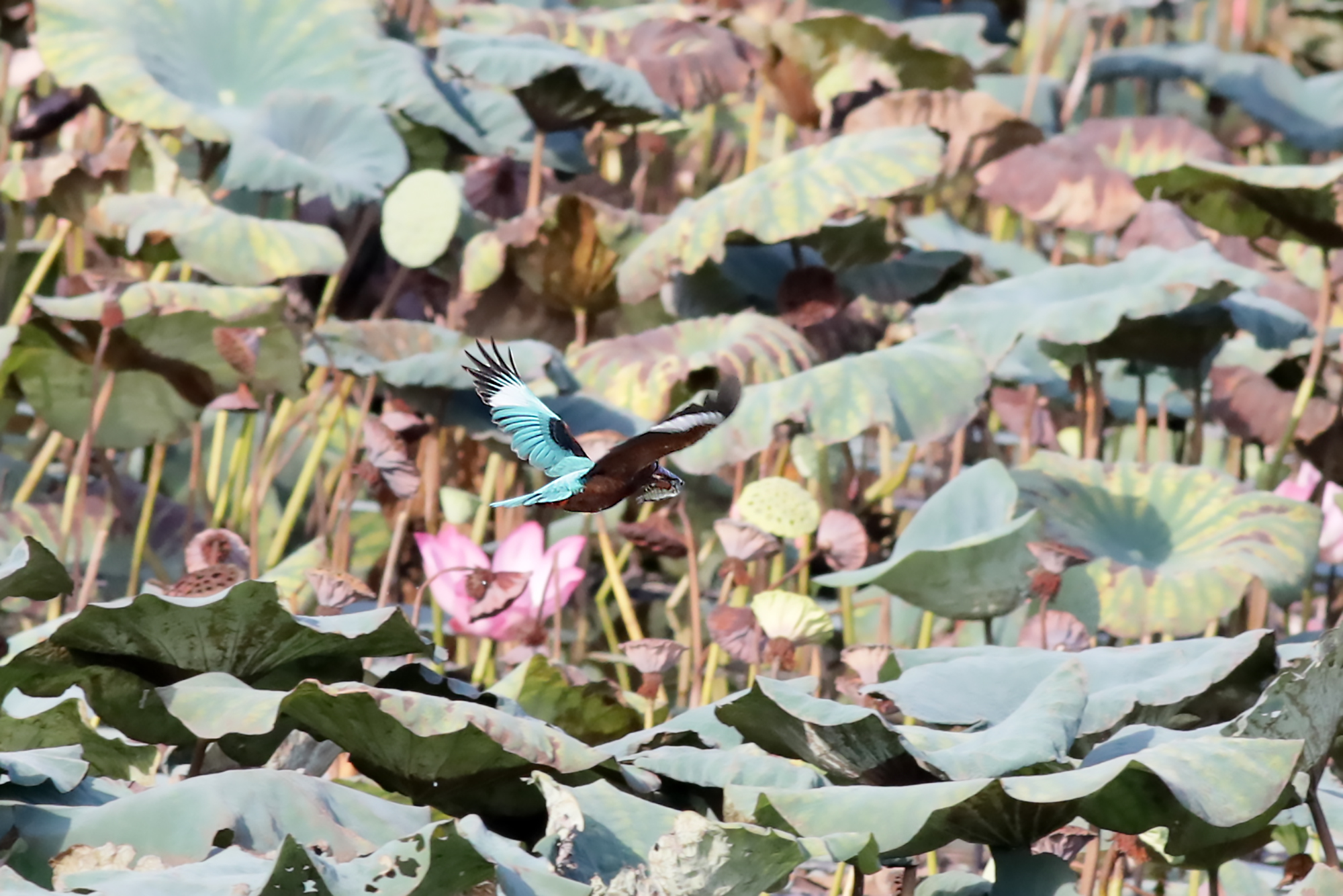 In an hour, I saw four different bird species. There are two Kingfishers, two water hens, and a Chinese pond heron.
